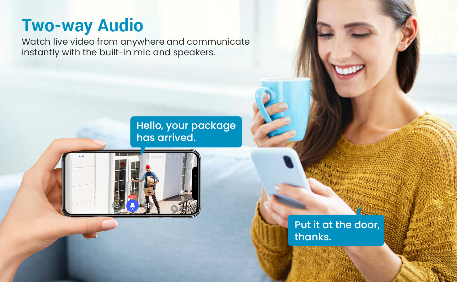 Whether you’re miles away or upstairs, talk to visitors instantly with
